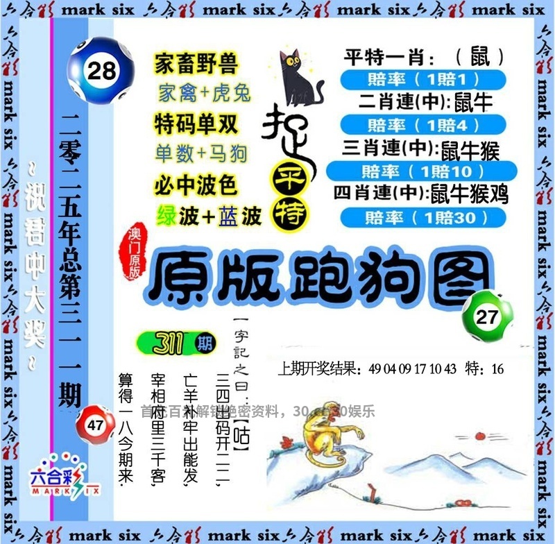 | 311期二肖 | 狗鼠 | 开:發00 |