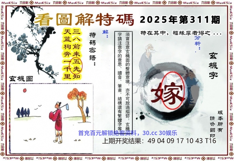 | 311期⑨码 | 08.30.04.43.02.05.36.23.49 | 开:發00 |